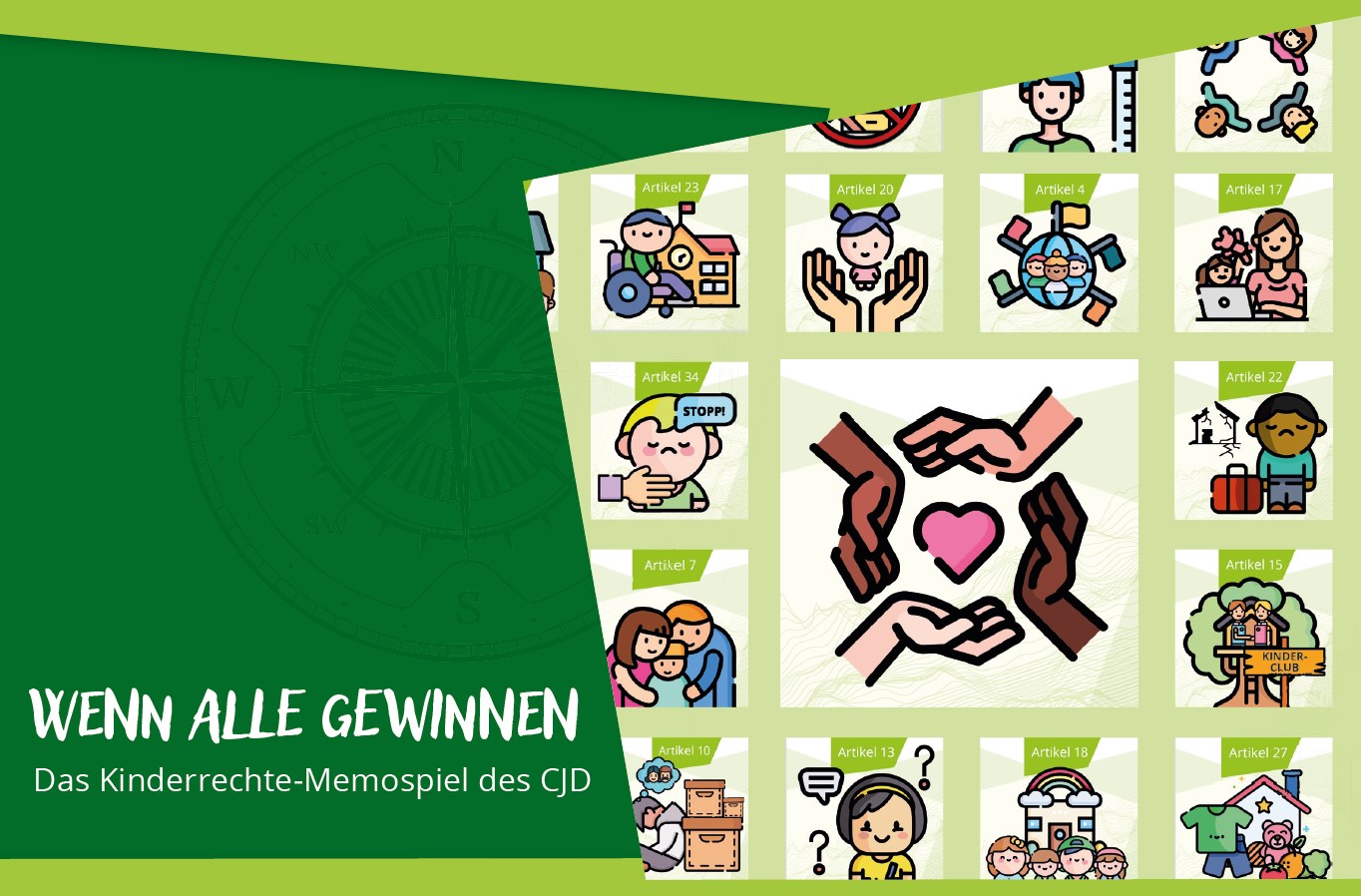 Herzlich Willkommen auf der begleitenden Internetseite zum Memospiel „Wenn alle gewinnen“. Das Spiel lädt ein sich mit den Kinderrechten auseinanderzusetzen. Natürlich kann es einerseits „nur“ gespielt werden, aber andererseits ist es spannender, wenn ihr euch auch intensiver mit den Rechten beschäftigt. Dazu findet ihr nachfolgend einige Anregungen.